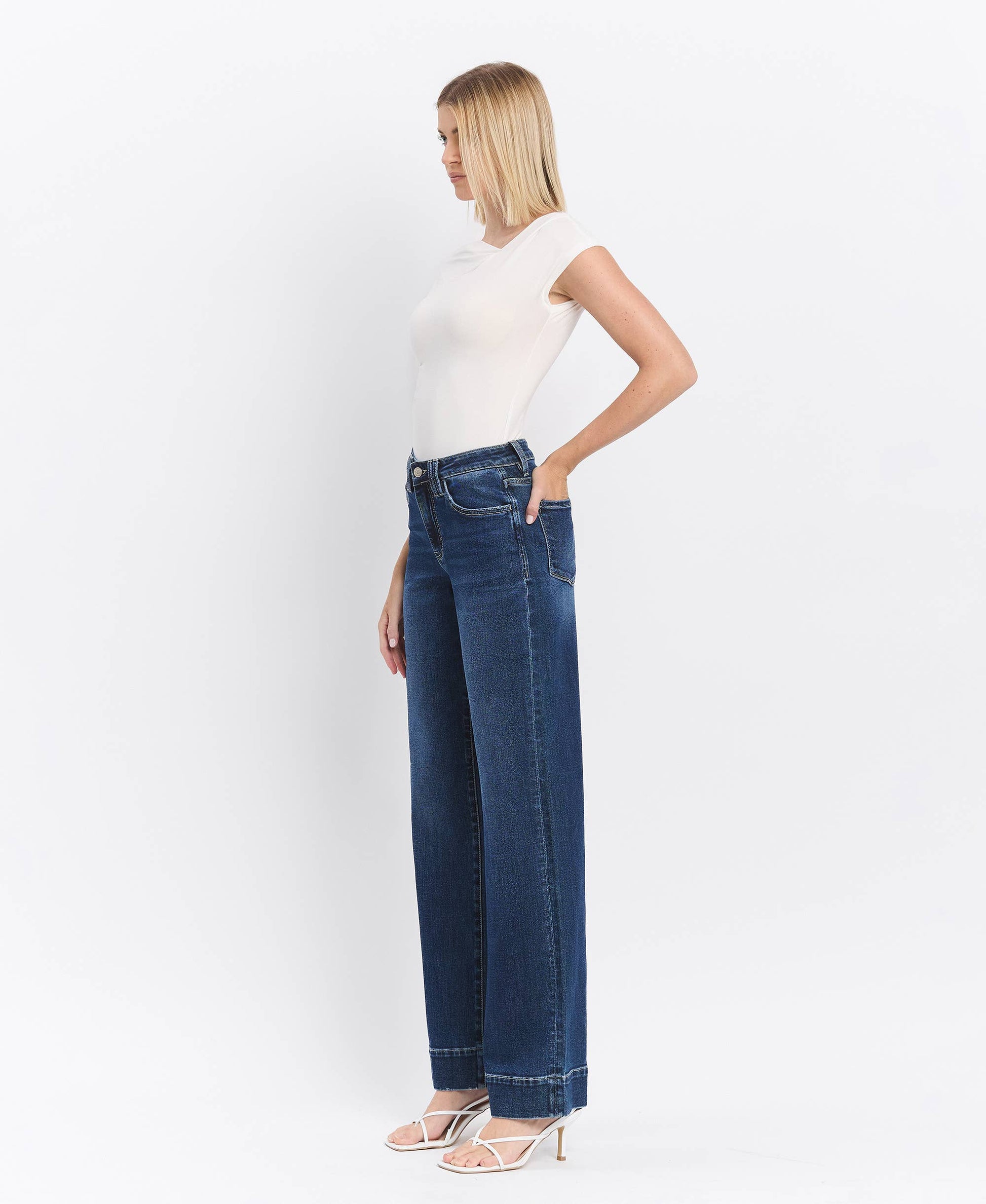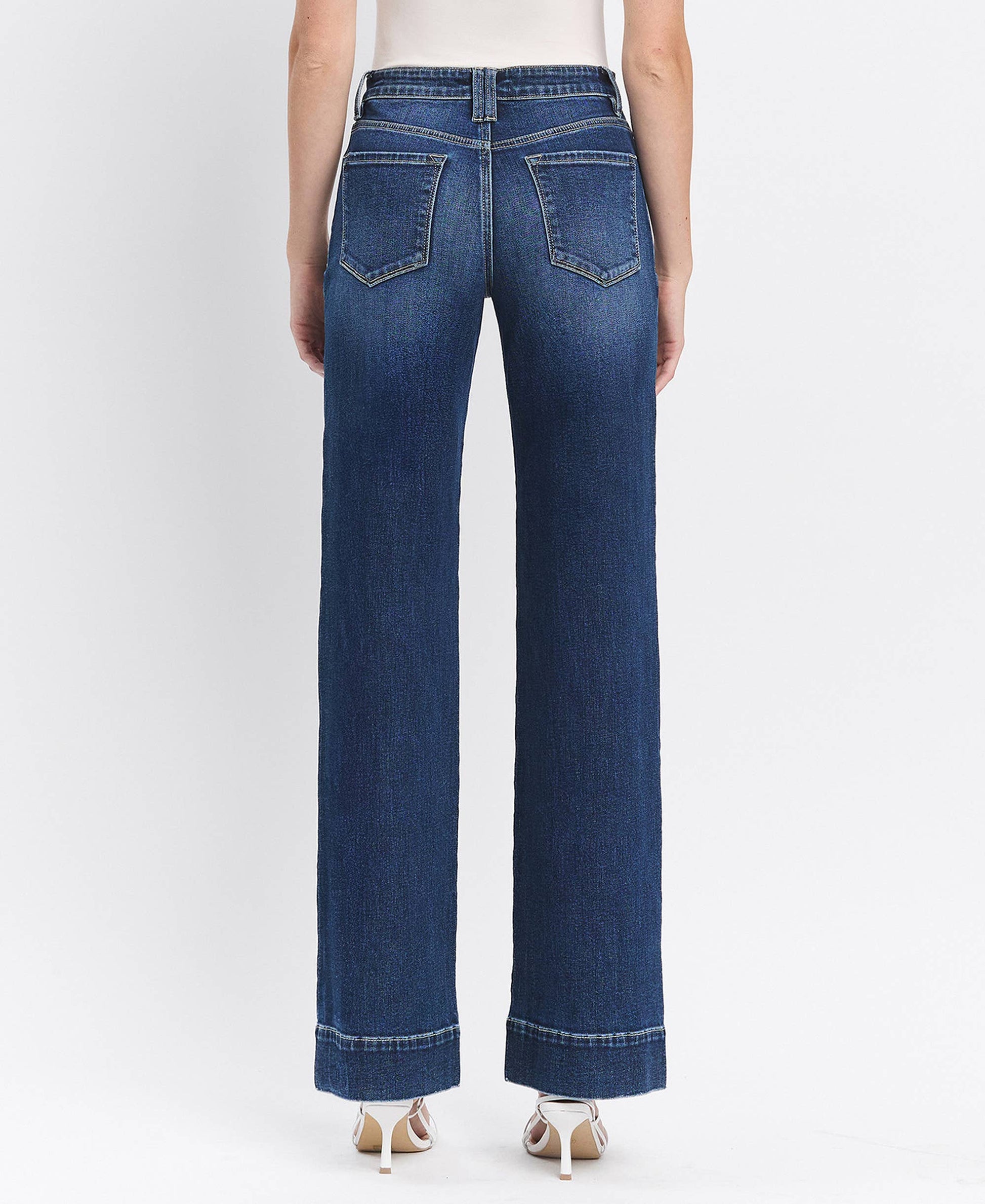 HIGH RISE DARK WASH TROUSER WIDE JEANS