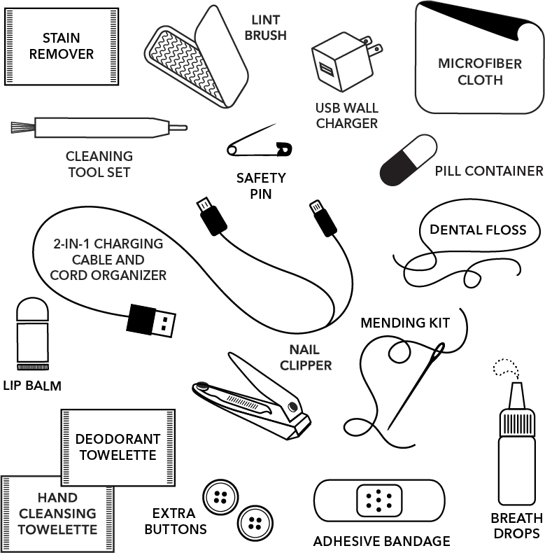 Be ready for anything with the new Everything Kit by Pinch Provisions, an all-in-one solution for life on-the-go. With 18 thoughtfully curated essentials, this sleek, compact pouch combines the best of our bestselling personal care and tech kits into one powerful, portable companion. The kit includes: microfiber cloth, adhesive bandage, nail clipper, dental floss, lint brush, extra buttons, wall plug, earbud cleaning tool, pill box, cord organizer, breath drops, lip balm, mending kit, safety pin, deodorant wipe, stain remover wipe, and hand cleansing wipe.
